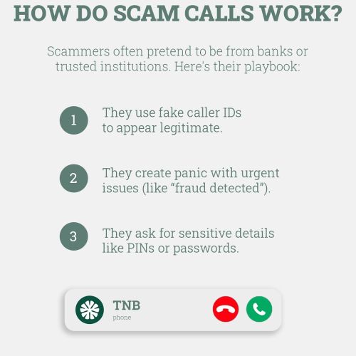 give your full PIN or online/telephone banking login details to anyone, even a caller claiming to be from your bank or the police. If you are asked for this information, end the call immediately.