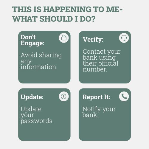Please ignore these messages. We will never ask for your full card number, PIN or codes by phone or SMS.