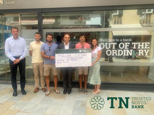 Trusted Novus Bank proudly handed over a cheque for £1.000 to Andrew, Daniel, James and Jamie from the Calendar Club Challenge in aid of Calpe House.