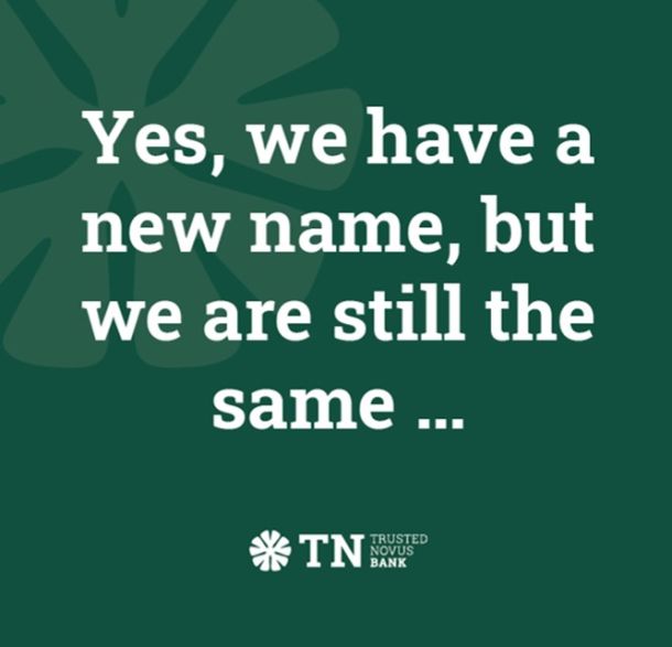 We now trade under the name Trusted Novus Bank.