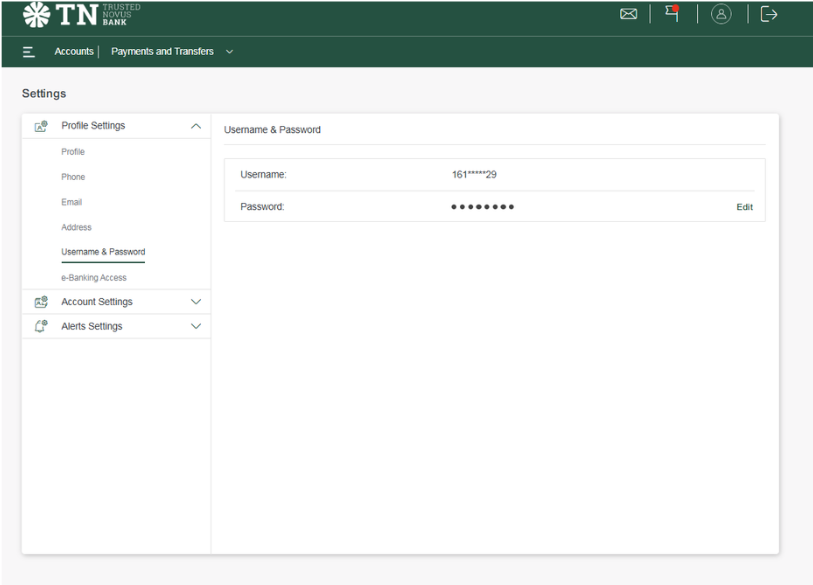 - To make changes, click the ‘Edit’ button next to your password on the right.