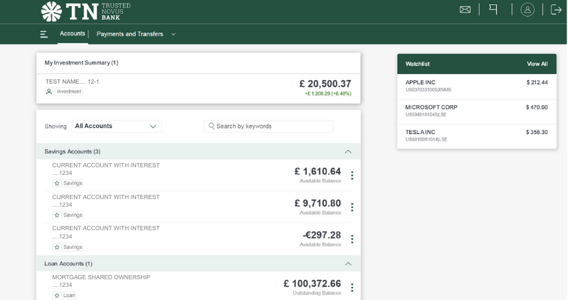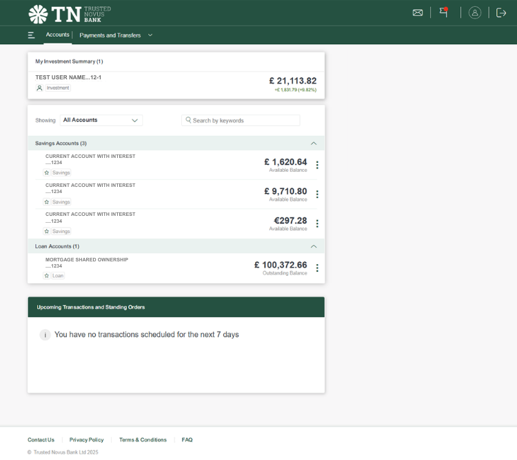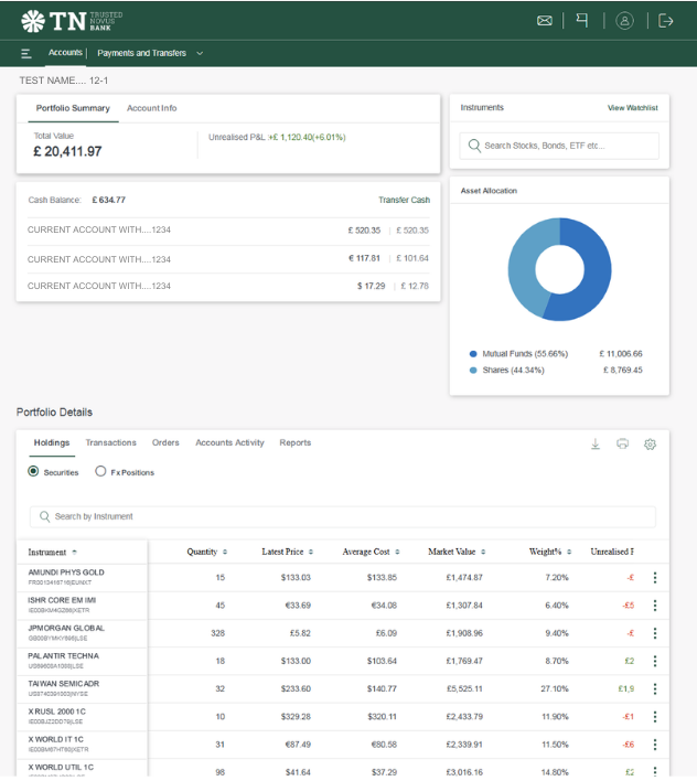 1. Your login screen shows an overview of all of your accounts. At the top of the screen you will see ‘My Investment Summary’, which is followed by your other accounts as shown below: