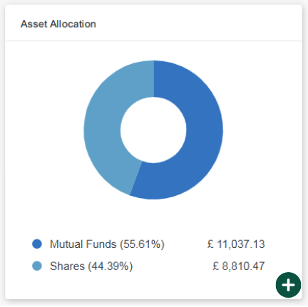 7. ‘Asset Allocation’ is shown as a pie chart which displays both the percentage and total amount held in each category, such as: