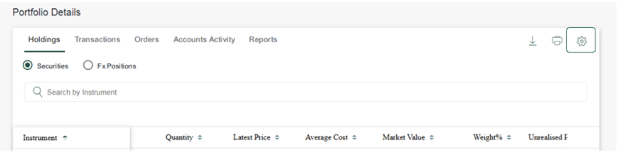 - Here you can ‘Search’ for your holdings within your portfolio