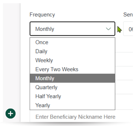 1. Follow the Payments steps above and specify ‘Frequency’ to schedule a standing order