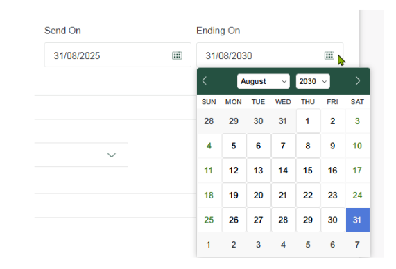3. Choose day to ‘Send On’.