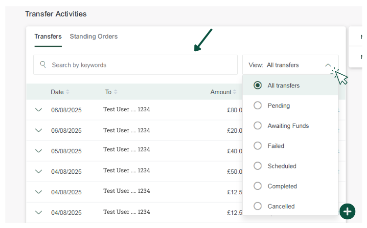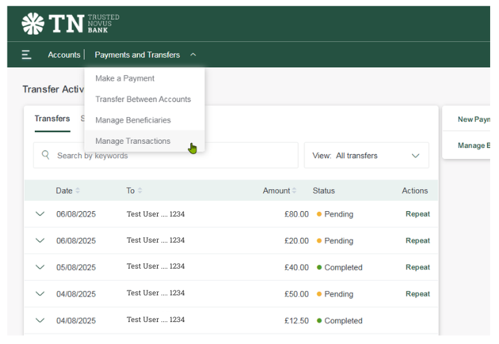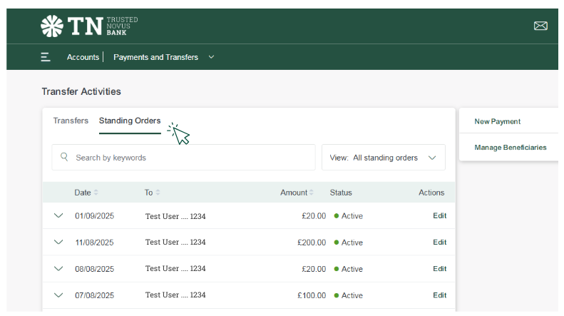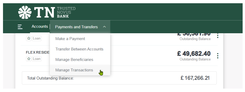 1. Alternatively to see all ‘Standing Orders’ go to ‘Manage Transactions’.